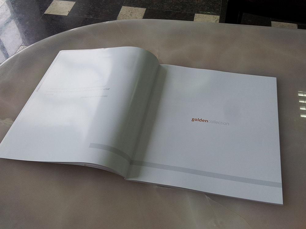 Буклет, для которого нам предстояло написать тексты, называется «Golden Collection», он носит название лучшей коллекции камня, включающей в себя только отборные и эксклюзивные сорта добываемого сырья.