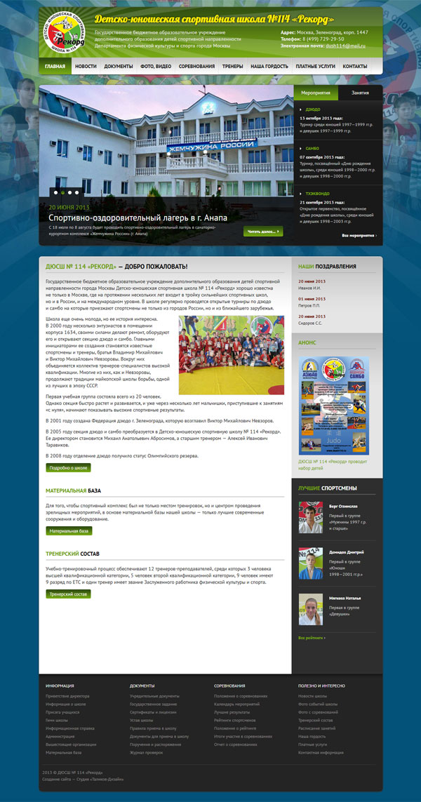В раздел «Сайты > Портфолио» добавлена работа: создание сайта Детско-юношеской спортивной школы № 114 «Рекорд» Департамента физической культуры и спорта города Москвы.