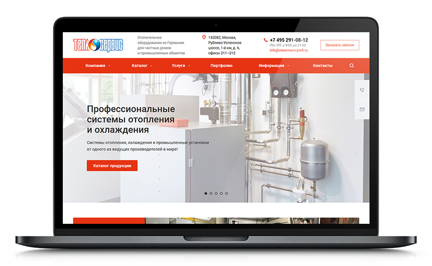Каталог продукции подробно описывает каждое изделие. При необходимости можно заказать товар: заявка сразу же отправляется на электронную почту заказчика и интегрируется в систему AmoCRM поставщика. Поддержка сайта осуществляется специалистами «ТЕПЛОСЕРВИС».